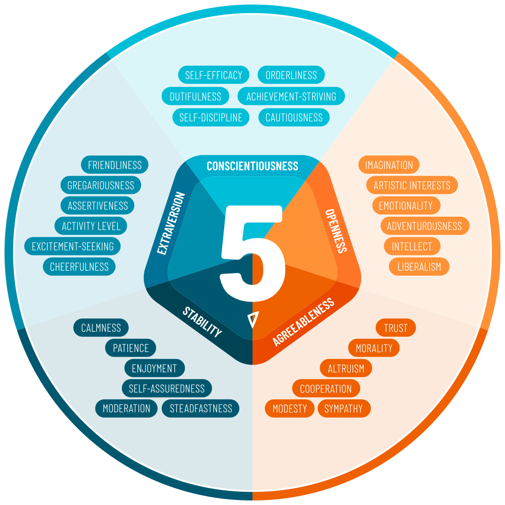 The BFI-2 is a measure of the Big Five personality domains (Extraversion, Agreeableness, Conscientiousness, Negative Emotionality, and Open-Mindedness) and 15 more-specific facet traits.